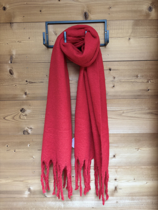 De Sjaal Stiene is een tijdloze basic die je eindeloos kunt combineren. Het effen design met speelse flossen geeft elke outfit een stijlvolle en gezellige touch. Met zijn royale formaat van 48 x…€ 15,00 - Sjaal Stiene rood