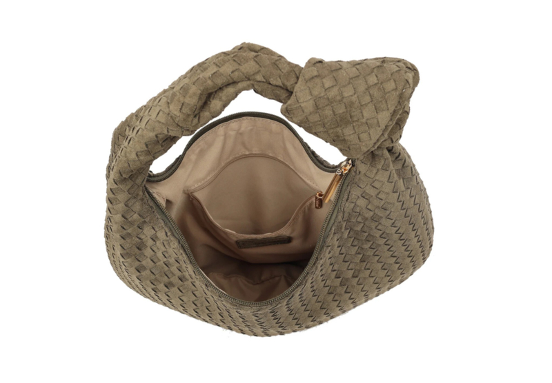 Handtas Gonda – Zwart Suède, Geweven Schoudertasje