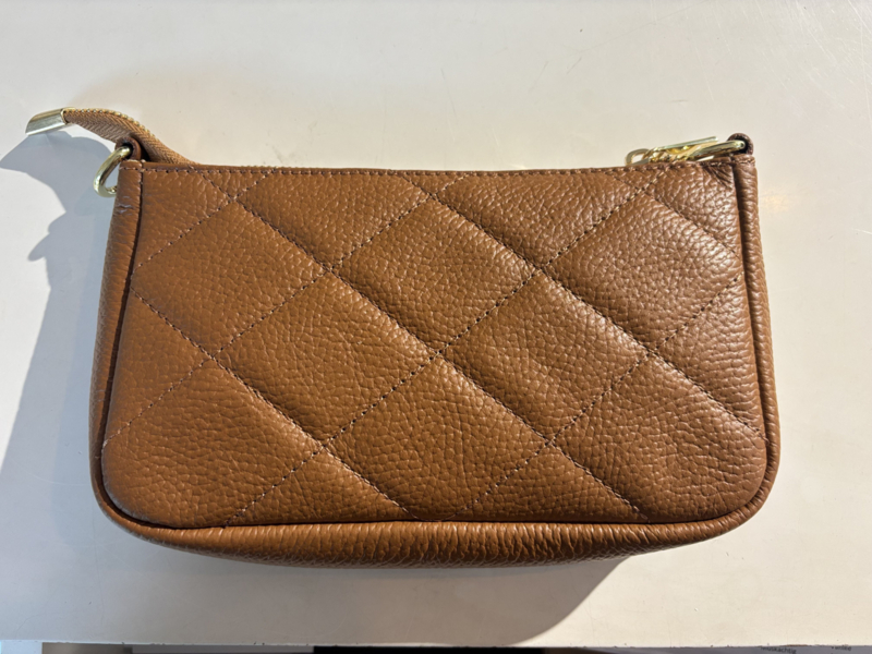 Handtas Sien – Echt Leer, Doorgestikt met Gouden Rits
